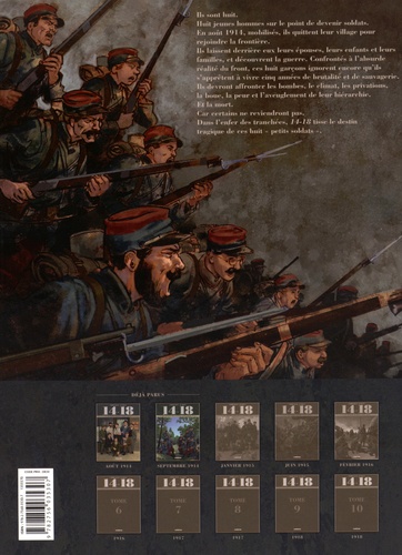 En août 1914, Louis, Jacques, Maurice, Armand, Denis, Arsène, Pierre et Jules sont mobilisés. Ils sont huit amis, originaires du même village et affectés dans le même régiment. Ensemble ils découvrent la guerre et ses horreurs.