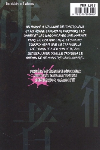 Vous avez intérêt à valider votre ticket ! Un homme à l'allure étrange, habillé comme un agent de compagnie ferroviaire, erre dans les gares et les trains nippons. Quiconque croise le chemin de cet être terrifiant, doté d'une immense paire de ciseaux, meurt à la prochaine gare d'une manière horrible. Tsukiko, une étudiante vivant une vie modeste sur le campus, se trouve avec son petit ami dans le train et pense l'avoir aperçu... Ils doivent donc fuir... et vite ! POINTS FORTS - Une série courte en 3 tomes. - Une histoire d'horreur dans le monde ferroviaire où les frissons et les chocs sont intenses ! - Un graphisme stylisé peu avare en détails sanguinolents - Un slasher violent et débridé - Dans la droite lignée de films d'horreur " ferroviaires " tels que Creep (2004) de Christopher Smith ou encore Midnight Meat Train (2008) de Ryûhei Kitamura.