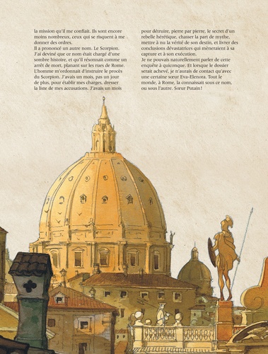 Le frère Lübeck, un inquisiteur au passé chargé, doit retracer le parcours du Scorpion sous la menace d'une mystérieuse commanditaire. En multipliant les interrogatoires pour son procès, il lève peu à peu le voile sur les motivations du Scorpion. Un album qui approfondit la personnalité du héros et précise les enjeux des volumes à venir.