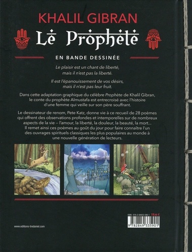 L'adaptation graphique du célèbre Prophète de Khalil Gibran ! "Le plaisir est un chant de liberté, mais il n'est pas la liberté. Il est l'épanouissement de vos désirs, mais il n'est pas leur fruit". Dans cette adaptation graphique du célèbre Prophète de Khalil Gibran, le conte du prophète Almustafa est entrecroisé avec l'histoire d'une femme qui veille sur son père souffrant. Le dessinateur de renom, Pete Katz, donne vie à ce recueil de 28 poèmes qui offrent des observations profondes et intemporelles sur de nombreux aspects de la vie - l'amour, la liberté, la douleur, la beauté, la mort... Il remet ainsi ces poèmes au goût du jour pour faire connaître l'un des ouvrages spirituels classiques les plus populaires au monde à une nouvelle génération de lecteurs.