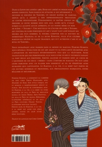 Dans le Japon des années 1960, Kyoji est libéré de prison pour bonne conduite. Sans famille ni attache, il est déterminé à devenir le disciple de Yakumo, un grand maître du rakugo, depuis qu'il a assisté à son impressionnante prestation au centre pénitentiaire. Etrangement, le maître choisit de prendre le jeune homme sous son aile, alors qu'il n'avait jusque-là accepté aucun apprenti, et lui donne même un nom de scène : "Yotaro". Une nouvelle vie s'ouvre dès lors à Yotaro, qui tentera de faire perdurer cet art l'ayant tant aidé durant ses heures les plus sombres. Il pourra compter sur le soutien du domestique Matsuda et de la jeune Konatsu, fille d'un célèbre rakugo-ka décédé de façon tragique, qui fut autrefoisl'ami et le rival de Yakumo... Nous entraînant avec passion dans le monde du rakugo, Haruko Kumota nous dévoile l'évolution de cet art ayant vu sa popularité décroître avec l'apparition de nouveaux divertissements tels que la télévision. Aussi talentueuse que ses personnages, elle nous livre un récit intimiste faisant la part belle aux émotions. Amitié, jalousie et passion sont au coeur de l'ascension de ces deux "frères" dans l'univers du rakugo. Onsuit ainsi leurs parcours avec un plaisir non dissimulé au fil de péripéties aussi humaines que captivantes. Le Rakugo, à la vie, à la mort fait partie de ces oeuvres sensibles et profondes, aux protagonistes marquants, entre réalisme et mélodrame.