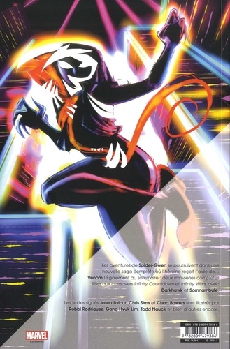 Les aventures de Spider-Gwen se poursuivent dans une nouvelle saga complète où l'héroïne reçoit l'aide de Venom ! Egalement au sommaire : deux mini-séries liées aux crossovers Infinity Countdown et Infinity Wars avec Darkhawk et Somnambule.