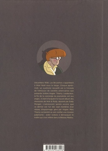 Décembre 1938. Les Bruxellois s'apprêtent à fêter Noël sous la neige. Chaque après-midi, un auditoire recueilli est à l'écoute de l'émission de variétés américaines que présente Isidore Hogier. Thierry Laudacieux, le fils de la concierge du journaliste, est aux anges : il vient d'acquérir le nouvel album des Aventures de Nick & Rudy, dessiné par Eddy Morgan. L'adolescent ignore encore que ce dernier est l'un des sept membres d'un réseau d'espionnage géré par Hogier. Mais Thierry va bientôt se voir confier une mission palpitante : aider Isidore à démasquer le traître qui s'est infiltré dans le Réseau Madou.