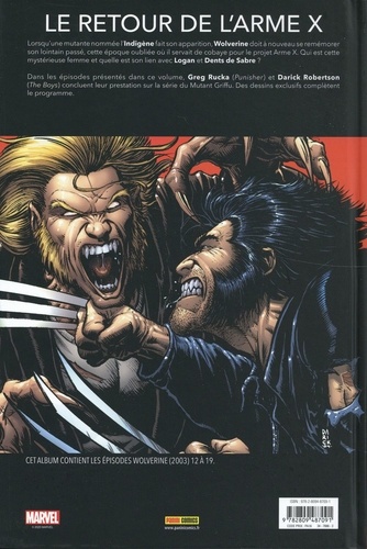 Lorsqu'une mystérieuse mutante fait son apparition, Wolverine doit plonger une fois de plus dans son lointain passé, celui qu'il a oublié, lorsqu'il était utilisé par le projet Arme X. Qui est l'Indigène et quelle est son lien avec Logan et Dents de Sabre ? Cette série Wolverine (2003) a donné lieu à des runs mémorables comme ceux de Mark Millar, Jason Aaron, Jeph Loeb ou encore les épisodes liés à Civil War. Ceux de Rucka et Robertson étaient restés inédits en librairie jusqu'à présent, c'est donc une belle découverte pour les lecteurs qui n'ont pas lu la version kiosque de l'époque.