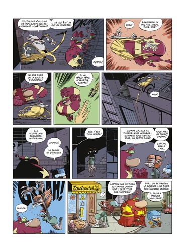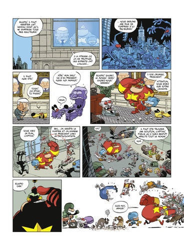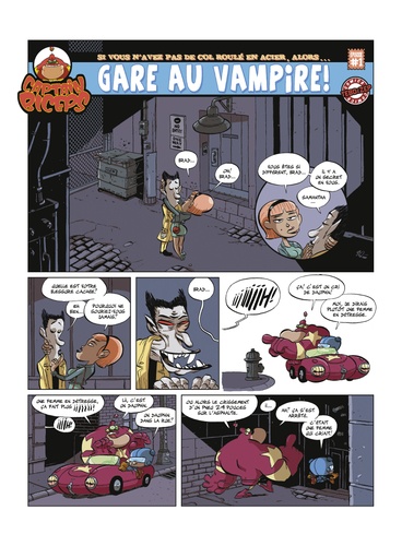 L'invincible, le redoutable, l'invulnérable, l'inoxydable, l'intrépide Captain Biceps est de retour ! Eh oui, les super-vilains n'ont pas fini de semer la pagaille et la ville a plus que jamais besoin de son justicier en collants rouges, surtout lorsqu'elle se retrouve envahie par une armée de vampires postillonneurs ! Et ce n'est pas tout : l'infâme docteur Nuisible, qui décidément porte toujours aussi bien son nom, échafaude un plan machiavélique pour s'échapper de prison, afin de rendre la monnaie de sa pièce au plus balèze des superhéros... Prend garde, Captain Biceps !