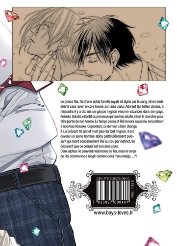 Le Prince Rai, fils d'une noble famille royale et alpha par le sang, vit en toute liberté sans avoir encore trouvé son âme soeur. Adorant les belles choses, il rencontra il y a dix ans un garçon mignon venu en vacances dans son pays, Keisuke Sakaki, et lui fit la promesse qu'une fois adulte, il irait le chercher pour faire partie de son harem. Le temps passa et Rai honore sa parole, rencontrant à nouveau Keisuke. Cependant, ce dernier a bien changé, il a à présent 18 ans et n'est plus du tout mignon. Il est devenu un jeune homme alpha particulièrement puissant qui mord soudainement Rai au cou par instinct, lui déclarant que ce dernier est son âme soeur. Deux alphas ne peuvent néanmoins se lier, mais le corps de Rai commence à réagir comme celui d'un oméga... ? !