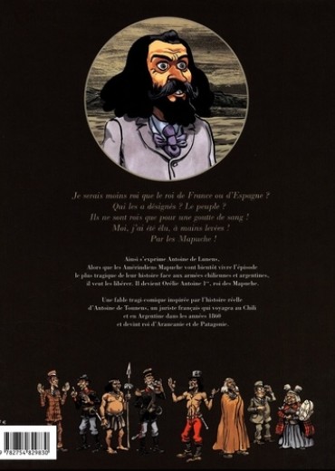 "Je serais moins roi que le roi de France ou d'Espagne ? Qui les a désignés ? Le peuple ? Ils ne sont rois que pour une goutte de sang ! Moi, j'ai été élu, à mains levées ! Par les Mapuche ! " Ainsi s'exprime Antoine de Lunens. Alors que les Amérindiens Mapuche vont bientôt vivre l'épisode le plus tragique de leur histoire face aux armées chiliennes et argentines, il veut les libérer. Il devient Orélie Antoine Ie, roi des Mapuche. Une fable tragi-comique inspirée par l'histoire réelle d'Antoine de Tounens, un juriste français qui voyagea au Chili et en Argentine dans les années 1860 et devint roi d'Araucanie et de Patagonie.