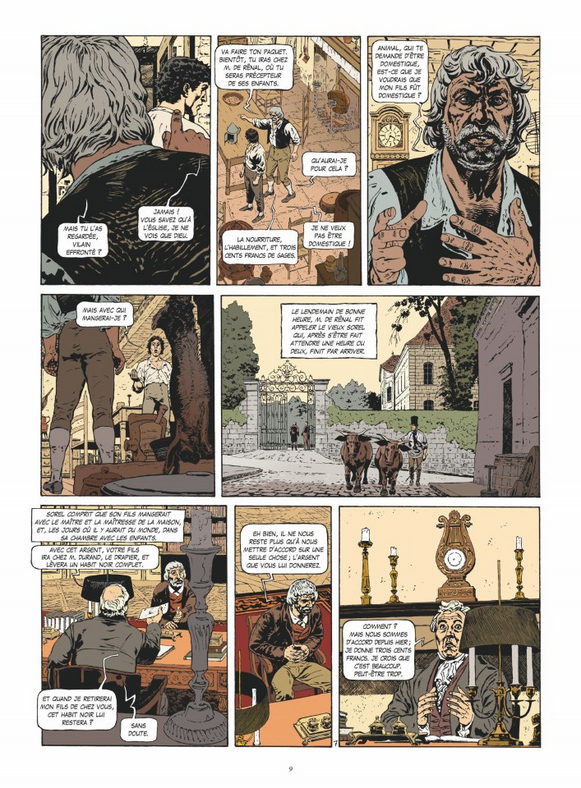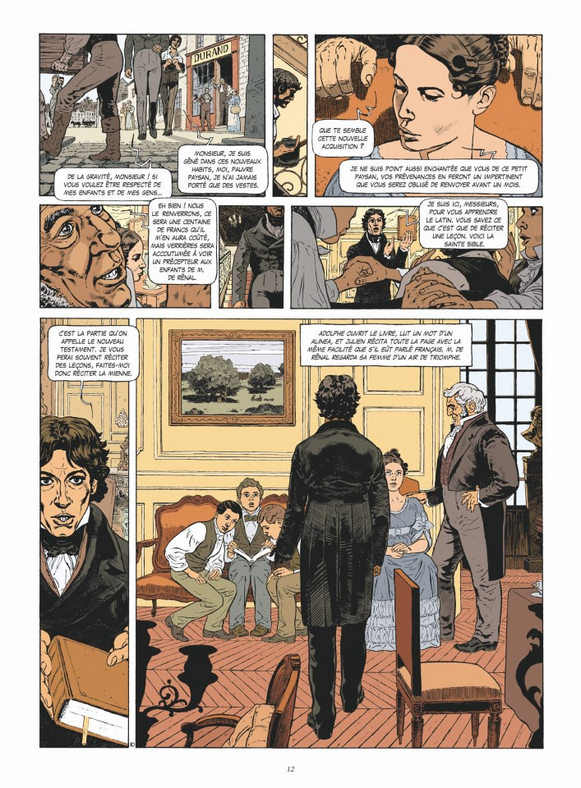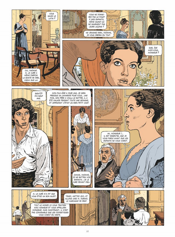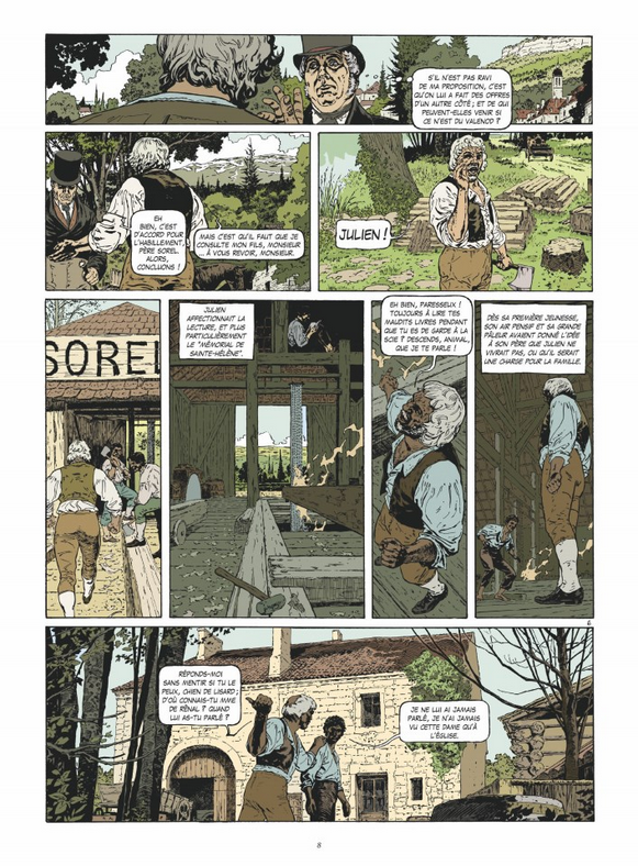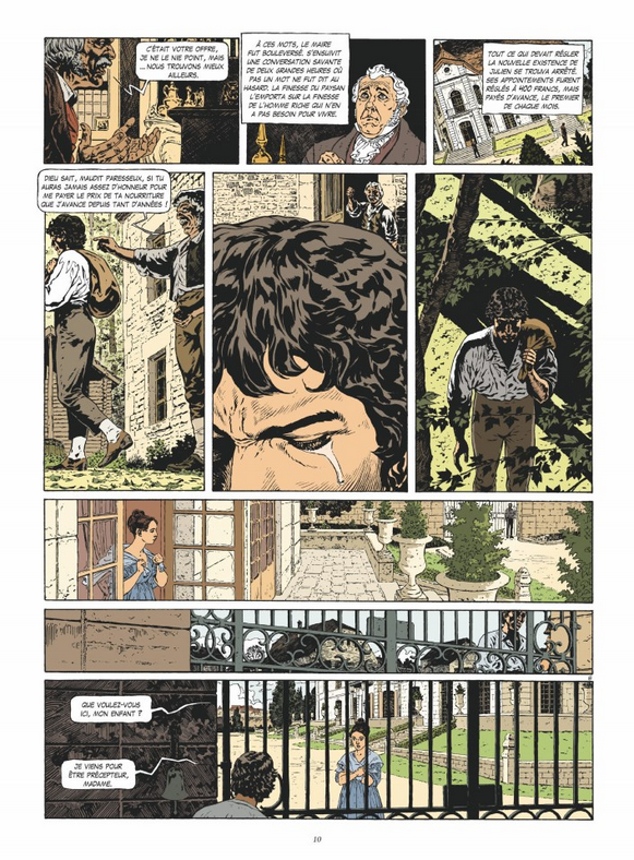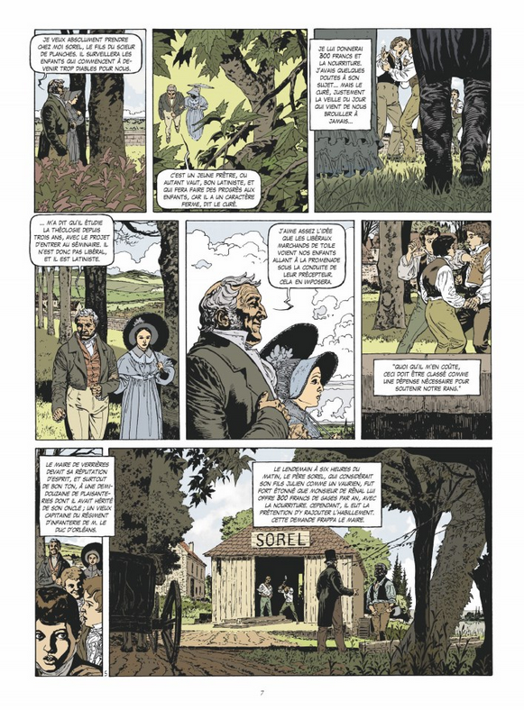 Jeune homme de dix-neuf ans d'origine modeste, mais instruit et ambitieux, Julien Sorel est engagé comme précepteur des enfants de M. de Rénal, maire de la ville de Verrières. Il parvient peu à peu à séduire Mme de Rénal, mais lorsque le fils de la jeune femme bourgeoise tombe gravement malade, elle croit au châtiment divin et est prise de remord. M. de Rénal ayant reçu une lettre anonyme dénonçant la liaison amoureuse de sa femme, le jeune précepteur est chassé de la maison.