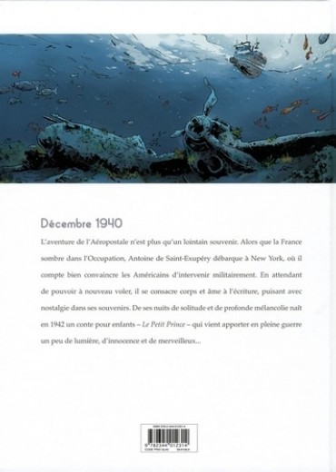 Ou le récit de comment Le Petit Prince est né... 1940. L'aventure de l'Aéropostale n'est plus qu'un lointain souvenir. Alors que la France sombre dans l'Occupation, Antoine de Saint-Exupéry débarque à New-York, où il compte bien convaincre les Américains d'intervenir militairement. En attendant de pouvoir de nouveau voler, il se consacre corps et âme à l'écriture, puisant avec nostalgie dans ses souvenirs. De ses nuits de solitude et de profonde mélancolie naît en 1943 un conte pour enfants - Le Petit Prince- qui vient apporter en pleine guerre un peu de lumière, d'innocence et de merveilleux... Après avoir découvert l'aventurier, ce deuxième volume consacré aux dernières années de Saint-Exupéry nous présente davantage l'écrivain et l'une de ses plus belles oeuvres : Le Petit Prince.