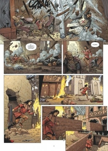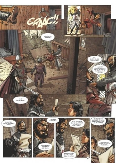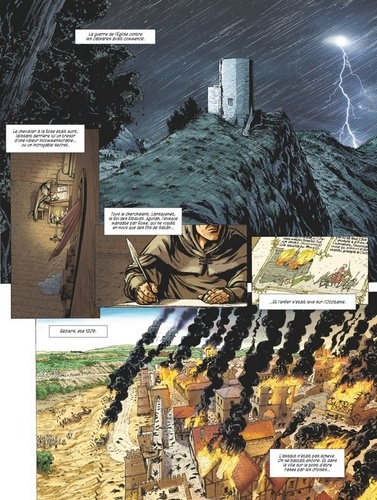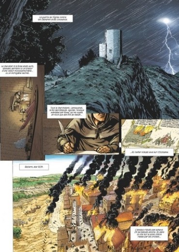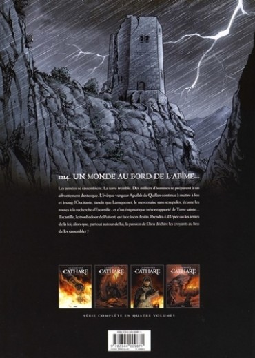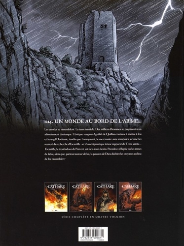 Le troubadour Escartille de Puivert se réveille au milieu du charnier de Béziers et vole vers Carcassonne et Toulouse. Il espère y trouver refuge et découvrir la vérité sur la mort de son père, le mystérieux Chevalier à la Rose. L'évêque vengeur Aguilah de Quillan poursuit sa mise à feu et à sang de l'Occitanie au nom de Dieu, tandis que son exécuteur de basses œuvres, Lansquenet, le mercenaire sans scrupules, écume les routes à la recherche d'Escartille et d'un trésor énigmatique rapporté de Terre Sainte...Mais voici que les armées se rassemblent ; la terre tremble et des milliers d'hommes se préparent. Aguilah veut faire couler le sang des hérétiques ! Stupeur : le roi d'Aragon, catholique pourtant, prend la tête de la rébellion cathare.Un affrontement dantesque se prépare dans la plaine fumante de Muret... Avec ce deuxième volet de l'adaptation de l'Église de Satan, Arnaud Delalande et Éric Lambert poursuivent leur magnifique épopée cathare, pleine de bruit et de fureur.