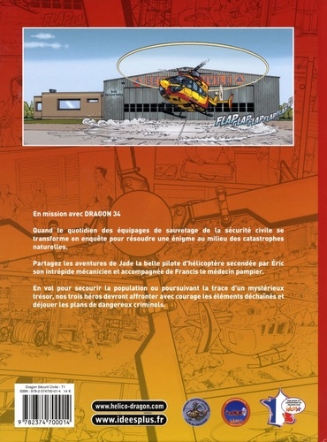 En mission avec Dragon 34 Quand le quotidien des équipages de sauvetage de la sécurité civile se transforme en enquête pour résoudre une énigme au milieu des catastrophes naturelles. Partagez les aventures de Jade la belle pilote d'hélicoptère secondée par Eric son intrépide mécanicien et accompagnée de Francis le médecin pompier. En vol pour secourir la population ou poursuivant la trace d'un mystérieux trésor, nos trois héros devront affronter avec courage les éléments déchaînés et déjouer les plans de dangereux criminels.