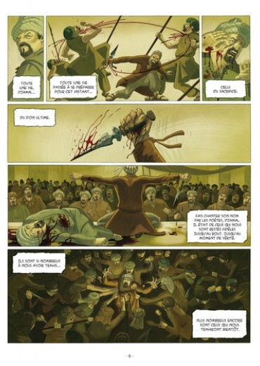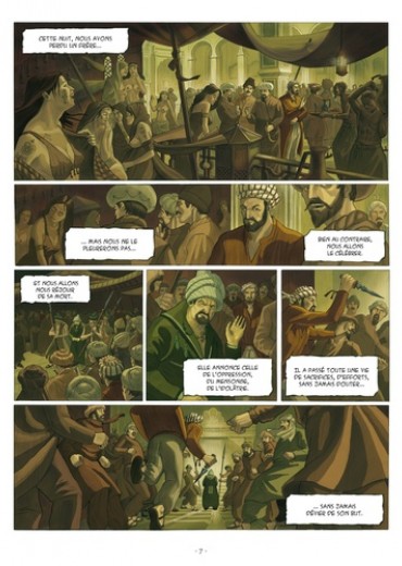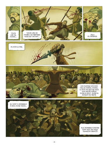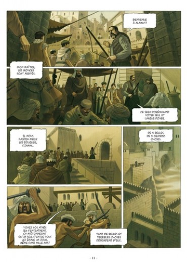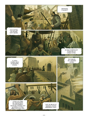 1177. Un sultan perse est assassiné devant sa cour, son meurtrier se laisse massacrer par la foule en colère. A plusieurs centaines de kilomètres de là, à Alamut, une forteresse cachée dans les montagnes de la frontière Est de l'Iran, un homme est condamné à mort pour trahison et pendu. Deux actes qui portent la signature du Vieux de la Montagne, maître incontesté de la secte des Assassins. Une organisation riche d'innombrables combattants d'une loyauté sans faille, qui a institué l'utilisation du meurtre public comme moyen de pression politique... La bande dessinée n'avait guère abordé jusqu'alors l'histoire fascinante de la secte des Assassins et de leur chef, que l'on peut considérer à bien des égards comme des précurseurs du terrorisme moderne. C'est désormais chose faite avec cette passionnante série en deux cycles de trois tomes chacun, à travers les aventures mouvementées de Selim l'Assassin, appelé à jouer un rôle clef dans la chute des Royaumes Chrétiens de Terre Sainte.
