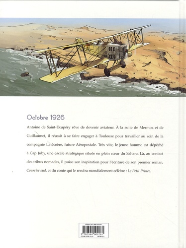 Octobre 1926. Antoine de Saint-Exupéry, qui rêve de devenir pilote d'avion, réussit à se faire engager à Toulouse pour travailler au sein de la compagnie Latécoère, future Aéropostale. Créée quelques mois après la Première Guerre mondiale, cette société relève le pari d'acheminer le transport du courrier par avion entre la France et l'Amérique du Sud via l'Afrique de l'Ouest. Très vite, Saint-Exupéry est dépêché à Cap Juby, une escale stratégique située en plein Sahara. Là, au contact des tribus nomades, le jeune pilote puise son inspiration pour l'écriture de son premier roman Courrier Sud. La genèse du Petit Prince, qui fera de lui un auteur mondialement reconnu, n'est pas loin...