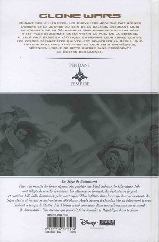 Durant des millénaires, les chevaliers Jedi ont fait régner l'ordre et la justice au sein de la galaxie, assurant ainsi la stabilité de la république. Mais aujourd'hui, leur rôle n'est plus seulement de maintenir la paix. De la défense, il leur faut passer à l'attaque en menant leur armée contre les forces séparatistes qui veulent renverser la république. De leur vaillance, mais aussi de leur sens stratégique, dépendra l'issue de cette guerre sans précédent : la guerre des clones. Le Siège de Saleucami : Face à la montée des forces séparatistes, les Jedi sont obligés de se salir les mains. Des alliances se forment, des destinées se forgent et certains Jedi - jadis hommes de paix - sont aujourd'hui infiltrés dans les rangs de l'ennemi se confrontant ainsi au côté obscur. Aayla Secura et Quinlan Vos en découvrent le prix tout particulièrement le prix. La République toute entière pourrait bien basculer dans le chaos...