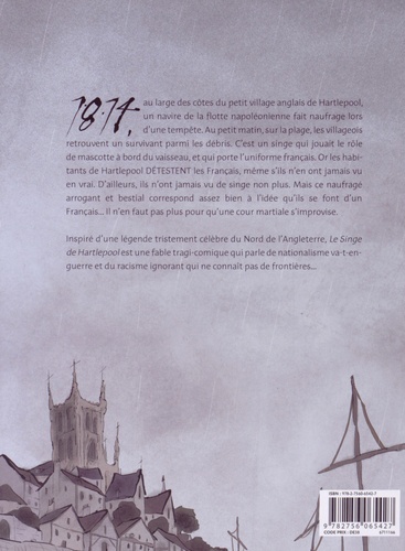 Edition enrichie pour le conte tragi-comique de Wilfrid Lupano et Jérémie Moreau. Une réflexion subtile et sublime sur le racisme ordinaire et le nationalisme, retranscription d'une légende populaire anglaise. En pleine guerre napoléonienne, un navire français fait naufrage au large de Hartlepool. Parmi les débris, un seul survivant : un chimpanzé, mascotte de l'équipage portant l'uniforme tricolore. Mais, dans ce petit village d'Angleterre, où personne n'a jamais vu de Français, l'animal correspond assez bien à l'idée qu'on se fait de l'ennemi. Aussitôt, le singe est traîné en justice, et accusé d'espionnage...