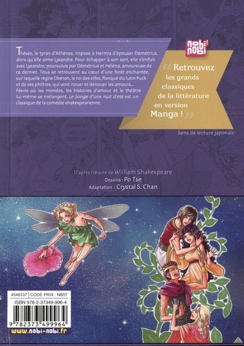 Thésée, le tyran d'Athènes, impose à Hermia d'épouser Démétrius, alors qu'elle aime Lysandre. Pour échapper à son sort, elle s'enfuit avec Lysandre, poursuivis par Démétrius et Helena, amoureuse de ce dernier. Tous se retrouvent au coeur d'une forêt enchantée, sur laquelle règne Obéron, le roi des elfes, flanqué du lutin Puck les grands et de ses philtres, qui vont nouer et dénouer les amours... Classiques Féerie où les mondes, les histoires d'amour et le théâtre lui-même se mélangent, Le Songe d'une nuit d'été est un de la littérature classique de la comédie shakespearienne.