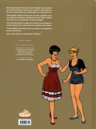 Betsy est une jeune femme curieuse et intrépide. Quoi de mieux qu’un défi lancé par sa cousine pour se jeter à corps perdu sur les traces d’une voiture qui semble détenir un curieux secret ? Cette Bugatti Atalante trouvée par son père, garagiste, pour le compte d’un industriel collectionneur de la région, semble faire peser sur ses propriétaire de grands dangers. Mais comment résister à l’appel de l’aventure et ainsi épater sa cousine Margot, bien connue pour ses enquêtes automobiles. C’est le début d’une grande aventure pour Betsy, mais également dupas mal d’ennuis... Saura-t-elle résister au Sortilège de l’Atalante ?