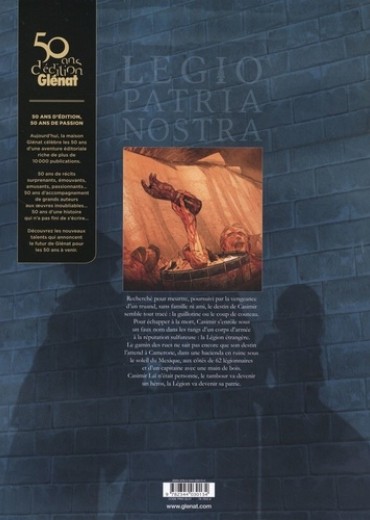 Et ainsi naquit la Légion Etrangère. Le 30 avril 1863 au Mexique, 62 légionnaires de la 3e compagnie du 1er bataillon du Régiment Etranger sont piégés par 2 000 soldats mexicains dans une hacienda délabrée du village de Camaron sur la route de Vera Cruz. Sous une chaleur de plomb, sans boire ni manger, ces légionnaires repousseront les assauts des Mexicains pendant près de douze heures. Ils ont juré à leur Capitaine de ne pas se rendre. Ils tiendront parole, écrivant ainsi sans le savoir l'histoire de la Légion, Camerone, la défaite devenue une légende. Sept ans plus tôt, à Lyon, Casimir, un gamin des rues, commet un meurtre en voulant protéger sa mère des violences de son souteneur. Contraint de fuir la ville, il entraine avec lui son meilleur ami Dino qui rêve d'un avenir meilleur. Mais échapper à son destin est un jeu dangereux, et c'est dans les griffes du Maure, un chef de bande tyrannique et pervers, qu'ils se trouveront pris au piège. Un piège mortel dont Casimir devra s'échapper seul, trouvant refuge à Toulon où sa rencontre avec Evariste, un ancien soldat, dandy et joueur invétéré, l'amènera à s'enrôler sous un faux nom dans les rangs d'un corps d'armée à la réputation douteuse : la Légion Etrangère. Mais pour la première fois depuis longtemps dans la vie de Casimir, un rayon de soleil apparait en la personne de Zélie, des immenses yeux verts et un tempérament intraitable, avec qui il envisage une nouvelle vie au-delà de la méditerranée. Sa décision est prise, il va déserter. L'histoire de Casimir commence à peine, il ne sait pas encore qu'il va devenir un héros... Pour sa première bande dessinée, Jean-André Yerlès, scénariste pour l'audiovisuel, s'associe au flamboyant dessin de Marc-Antoine Boidin pour nous plonger dans une épopée virtuose et romanesque aux sources de la Légion étrangère. Une institution aujourd'hui chargée de symbole et dont la légende s'est écrite dans le sang, au Mexique, lors de la bataille de Camerone de 1863. En 5 volumes, Legio Patria Nostra (" La Légion, notre patrie ", devise de la Légion) nous raconte autant cette histoire que le parcours initiatique d'un orphelin des rues qui trouvera sa famille dans la Légion et apprendra parmi eux à devenir un soldat, un guerrier et tout simplement un homme dans la France turbulente du Second empire.