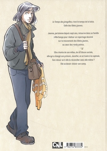 Jeanne, parisienne depuis sept ans, retourne dans sa famille à Mohrange pour réaliser un reportage sur le mouvement des Gilets jaunes, sur les ronds-points. Elle a honte de son milieu, de sa classe sociale, elle qui a changé son prénom, Jennifer, en arrivant à la capitale. Son retour va-t-elle la réconcilier avec elle-même ? Après Lip, des gens ordinaires, Laurent Galandon nous plonge au coeur du mouvement des Gilets jaunes pour parler des gens ordinaires, comprendre leurs colères, leurs espoirs, au-delà des clichés. Jeanne est dessinatrice indépendante. Les commandes se font rare. Ce jour-là, elle a rendez-vous avec le rédacteur en chef d'une revue parisienne branchée, à qui elle avait envoyé un aperçu de son travail. La chance va-t-elle enfin tourner ? Bingo ! La revue lui commande un reportage dessiné sur... les Gilets jaunes, en province. Les Gilets jaunes ? "Ces ploucs et ces fachos" ? Jeanne ne voit pas ce qu'elle pourrait bien raconter sur ces "gens". Elle accepte cependant, c'est peut-être une chance pour elle : un reportage dans Nouveaux regards, c'est une sacrée carte de visite ! Elle part donc pour... Morhange, et non pas Nancy, où ses amis pensent que vit sa famille. Sa mère n'est pas médecin, comme ils le croient, mais auxiliaire de vie. Et Jeanne ne s'appelle pas Jeanne mais Jennifer. Elle ment à ses amis parisiens, et surtout elle se ment. Elle a honte de sa mère qu'elle n'a pas vue depuis bien longtemps. Elle a honte de son milieu social. Les fins de mois de sa mère sont difficiles. Elle est épuisée. Elle est en colère. Elle est Gilet jaune... Pour Jeanne-Jennifer, c'est une découverte à laquelle elle ne s'attendait pas...