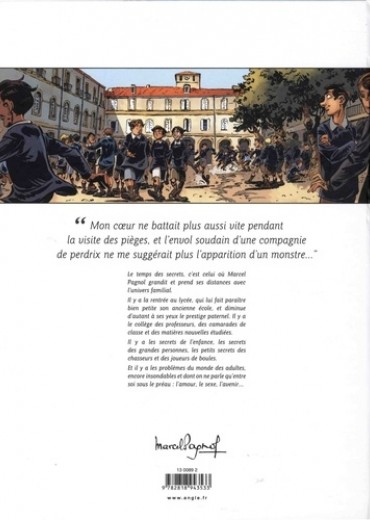 Le temps des secrets, c'est celui où Marcel Pagnol grandit et prend ses distances avec l'univers familial. Il y a la rentrée au lycée, qui lui fait paraître bien petite son ancienne école, et diminue d'autant à ses yeux le prestige paternel. Il y a le collège des professeurs, des camarades de classe et des matières nouvelles étudiées. Il y a les secrets de l'enfance, les secrets des grandes personnes, les petits secrets des chasseurs et des joueurs de boules. Et il y a les problèmes du monde des adultes, encore insondables et dont on ne parle qu'entre soi sous le préau : l'amour, le sexe, l'avenir...