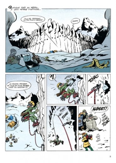 Au Népal, à 4 600 mètres d'altitude, une mystérieuse expédition tourne au cauchemar. M Zanskar, son commanditaire, est désespéré : impossible d'escalader cette roche friable comme de la biscotte et, donc, d'explorer les nombreuses grottes qui y sont creusées. Seccotine, qui fait partie de l'équipe, propose de lui amener l'homme de la situation : le comte de Champignac ! A quelques milliers de kilomètres de là, à Champignac-en-Cambrousse, de nouvelles expériences du propriétaire des lieux sur un nouveau carburant révolutionnaire ont détruit la moitié du château. Alertés, Spirou et Fantasio se précipitent chez le Comte pour découvrir leur ami en excellente santé et tout excité par une découverte stupéfiante : une explosion a mis à jour une crypte dans laquelle vivait un véritable petit sphinx ! Apparemment, l'animal veillait sur la dépouille de Côme de Champignac, le génial ancêtre du Comte décédé en 1829. Mais Seccotine débarque et, sachant se montrer particulièrement persuasive quand un scoop est en jeu, elle réussit à convaincre Spirou, Fantasio et le Comte de l'accompagner au Népal pour résoudre le mystère de "La princesse des glaces". Après Yoann et Vehlmann, après Frank Le Gall, c'est aujourd'hui Fabrice Tarrin et Yann qui nous livrent leur vision de Spirou et Fantasio. Dans cet album, ils ont décidé de faire un "Spirou" en occultant tout ce qui avait été dessiné après QRN sur Bretzelburg, autant dire qu'ils jettent aux oubliettes quarante années de "Spirou et Fantasio" ! C'est du propre...