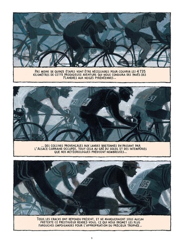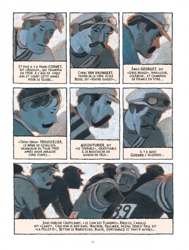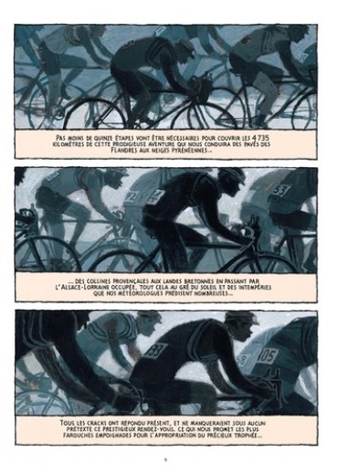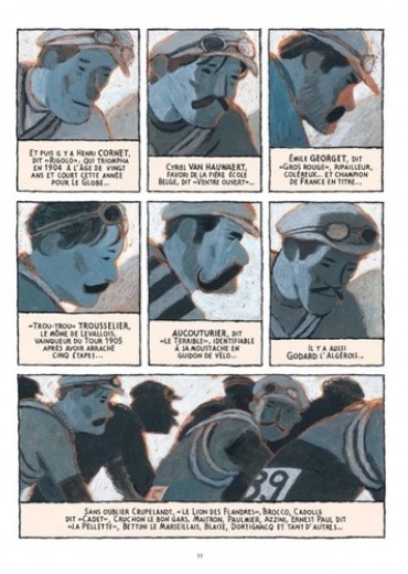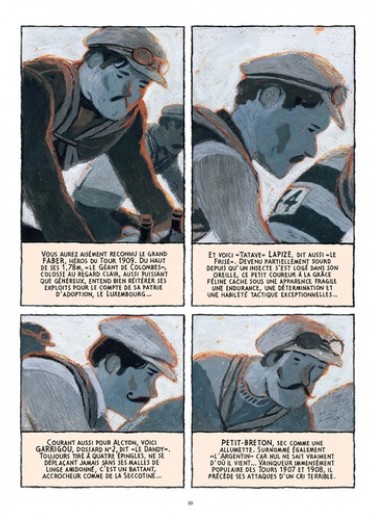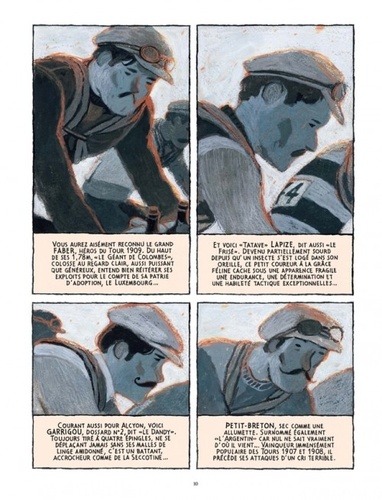 Cette histoire relate l'incroyable épopée vécue par des hommes durant le Tour de France en 1910, étape par étape. L'auteur s'attarde sur les personnages dont les coureurs Faber et Garrigou. Une vision plus humaine que sportive avec de réels moments d'émotion servis par un graphisme somptueux, d'une grande élégance, par un auteur issu du monde de l'illustration. Une révélation !