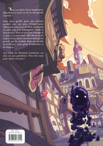 Nora est dotée d'une imagination débordante et toute sa vie est une grande aventure ! Mais alors qu'elle passe une journée paisible avec son père, d'inquiétantes silhouettes couvertes de boue surgissent de nulle part et le kidnappent ! Seule et désorientée, Nora ne perd pas courage et se lance à sa poursuite. Elle découvre les indices d'une chasse au trésor ainsi qu'un portail qui la conduit dans un monde merveilleux... mais plein d'embûches et de dangers. Avec l'aide de Monsieur Laminette, un chat un peu grincheux, Nora fera tout pour sauver son père !