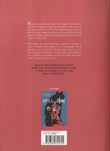 Maintenant millionnaire après avoir rapporté la poussière radioactive, Addison n'a plus qu'une idée en tête : partir le plus loin possible de la Zone. Une décision qui n'est pas au goût de tout le monde, et surtout pas de sa soeur Leva et de la poupée maléfique Vespertine, qui prend alors possession du corps de la jeune fille. Pour Addie, qui s'est donné pour mission de libérer sa soeur de l'entité démoniaque, c'est la catastrophe. Et sa rencontre avec le mystérieux Nord-coréen Don Jae ne va faire qu'aggraver la situation : il la persuade que les réponses à son problème sommeillent au coeur de la Spill Zone, plus active et dangereuse que jamais. Quelles forces malveillantes Addison devra-t-elle affronter pour sauver sa soeur, le secret de l'origine de la Spill Zone sera-t-il enfin révélé ?