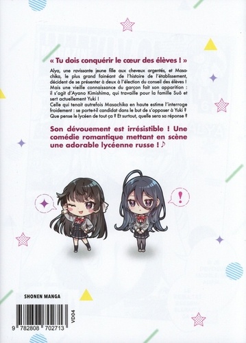" Tu dois conquérir le coeur des élèves ! " Alya, une ravissante jeune fille aux cheveux argentés, et Masachika, le plus grand fainéant de l'histoire de l'établissement, décident de se présenter à deux à l'élection du conseil des élèves Mais une vieille connaissance du garçon fait son apparition : il s'agit d'Ayano Kimishima, qui travaille pour la famille Suô et sert actuellement Yuki ! Celle qui tenait autrefois Masachika en haute estime l'interroge froidement : se porte-t-il candidat dans le but de s'opposer à Yuki ? Que pense le lycéen de tout ça ? Et surtout, quelle sera sa réponse ? Son dévouement est irrésistible ! Une comédie romantique mettant en scène une adorable lycéenne russe !