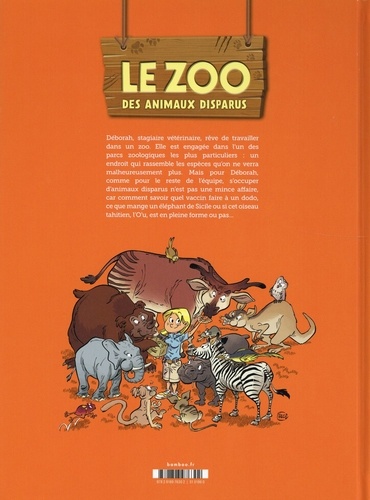 Le seul endroit où découvrir des animaux jamais vu ou qu'on ne verra malheureusement plus. Déborah, stagiaire vétérinaire qui rêve de travailler dans un zoo, se voit affecter dans un parc zoologique très particulier, car il ne présente aux visiteurs que des animaux éteints depuis des siècles, quelques décennies ou même quelques mois. Pas évident de savoir quel vaccin faire à un dodo, comment nourrir un éléphant de Sicile ou si cet oiseau tahitien, l'O'u, est en pleine forme ou pas... Inclus : un cahier pédagogique en partenariat avec l'AFdPZ