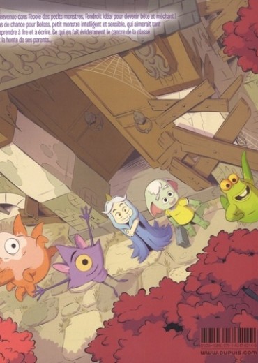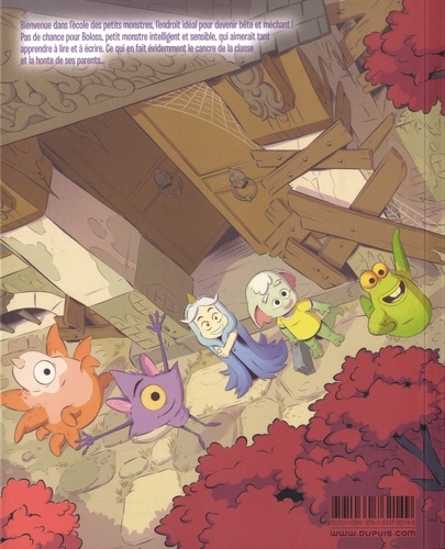 Devenir bête et méchant, ça s'apprend ! Il y a même une école pour ça. Une école où toutes les valeurs qu'on connaît dans notre monde humain sont inversées : il est interdit de lever son doigt pour répondre, d'étudier le soir chez soi ou d'arriver à l'heure à l'école. Les petits monstres qui fréquentent cette école profitent pleinement de cette situation, sauf Boloss, un petit monstre intelligent, délicat et sensible, qui n'arrive pas à respecter ces règles qui lui semblent un peu contre-nature. Il aimerait tellement être gentil et apprendre à lire et à écrire. Ce qui en fait évidemment le cancre de la classe et la honte de ses parents. Arrivera-t-il à s'intégrer ou va-t-il constituer un exemple déplorable pour ses condisciples ? En silence et tout seul, il rêve d'un monde où les enfants seraient comme lui... Les auteurs nous livrent une série jeunesse, bourrée de monstres, qui fait réfléchir aux valeurs de notre société avec une vraie réflexion sur la différence et l'acceptation de celle-ci.