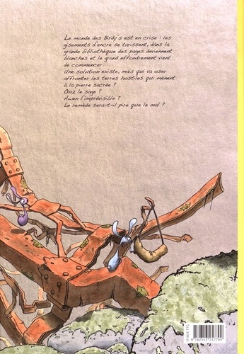 Le monde des Birdy's est en crise : les gisements d'encre se tarissent, dans la grande bibliothèque des pages deviennent blanches et le grand effondrement vient de commencer. Une solution existe, mais qui va oser affronter les terres hostiles qui mènent à la pierre sacrée ? Ouz le sage ? Awen l'imprévisible ? Le remède sera-t-il pire que le mal ?