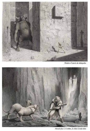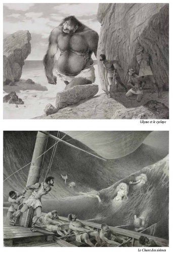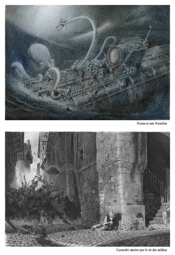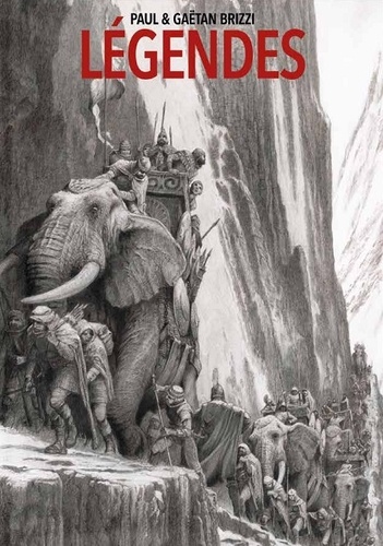 Passionnés de culture populaire, Paul et Gaëtan Brizzi ont choisi d'illustrer les mythes et les légendes pour leur deuxième exposition à la galerie Maghen. Le style graphique qu'ils ont développé pour ces dessins est le fruit de toutes leurs expériences passées : on y retrouve le génie des grands maîtres de l'illustration (on pense évidemment à Gustave Doré ou Grandville), mais aussi la force et la spontanéité des meilleurs story-boarders, les décors semi-réalistes des grands Disney, le dynamisme théâtral des personnages... Parfaitement à l'aise sur de très grands formats, ils développent des scènes monumentales fourmillant de vie et de détails. L'outil qu'ils utilisent, des crayons composés d'un mélange de graphite et de cire avec de très légers rehauts de couleur, leur permet d'obtenir ce rendu unique, à la fois précis et velouté. Les légendes représentées font partie du patrimoine universel : elles sont issues de la mythologie grecque (Ulysse, Hercule, Oedipe...), des textes bibliques (Jéricho, Babylone), de la culture celtique (Excalibur), de l'Histoire (Cléopâtre, César, Attila, Napoléon, Hannibal...) ou encore de la littérature (Gavroche, D'Artagnan, Tarzan...). Pour chacun de ces mythes, les illustrateurs ont choisi une ou plusieurs scènes emblématiques, qui les évoquent tout entier et sont devenues des icônes : Hannibal est représenté à la tête d'une colonne d'éléphants franchissant les montagnes, Néron contemple Rome incendiée, Thésée fait face au minotaure... Les pages sont rythmées par des extraits de poèmes (Baudelaire, Vigny, Apollinaire...) ou de textes en prose (Homère, Virgile, Hugo...) se rapportant aux légendes. Légende est un livre d'illustration reproduisant ces dessins sur un papier mat très proche de l'original. Les illustrations sont accompagnées des très nombreuses esquisses et recherches qu'ils effectuent avant d'attaquer l'illustration proprement dite.