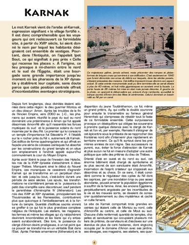 De toutes les civilisations qui ont côtoyé Rome au cours de l'Antiquité, le monde égyptien est probablement celui qui fascine le plus. C'est à cette découverte ou cette redécouverte, dont le plaisir n'est jamais tout à fait assouvi, à laquelle Alix convie ses fidèles, dans le cadre d'un grand voyage au fil du Nil. Architecture, religion, vie quotidienne, tous les grands thèmes éternels de l'Egypte antique sont au rendez-vous de cette magnifique promenade en images, centrée dans ce volume sur deux des plus beaux joyaux de cette culture incomparable : Karnak et Louxor. Leurs principaux sites (la cour bubastide, la grande salle hypostyle, Thèbes, le pylône et la grande cour de Ramsès II, le Ramasseum, la Vallée des Rois, etc...) font l'objet d'une visite érudite et détaillée dans les pas d'Alix et Enak, en écho à la rigueur documentaire dont Jacques Martin a toujours témoigné au fil de son oeuvre.