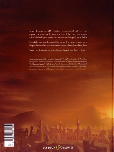 Dans l'Egypte du XIVe siècle, l'assassin El Cakr est su le point de remettre le sceptre d'Aset à la Fraternité quand celui-ci lui échappe à nouveau à cause de la mystérieuse Leila. Sept siècles plus tard, Jonathan Hawk tente de remettre la main sur la reliquen donnant lieu à un ultime combat entre Assassins et templiers. Découvrez le dénouement de la saga égyptienne dans ce tome !