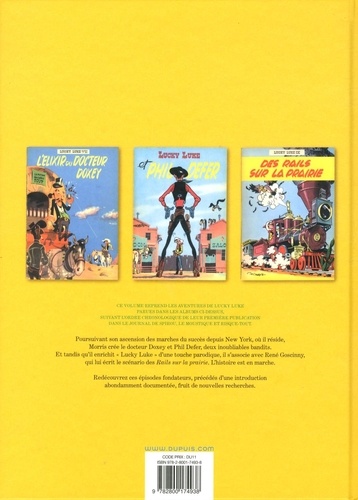 Ce troisième volume reprend "L'élixir du docteur Doxey", le mythique "Phil Defer" et "Des rails sur la prairie", ainsi que la version originale du récit complet "Grabuge à Pancake Valley", publié initialement dans l'éphémère revue Risque-Tout en 1956. En moins de cinq ans, Morris a réussi la prouesse d'installer son personnage dans un univers universel et singulier et dessine dès le début des années 1950 des épisodes devenus cultes. Et lorsque Goscinny lui écrit "Des rails sur la prairie", il se fond dans l'univers parodique de Morris avec une telle aisance que les deux partenaires ne se sépareront plus.