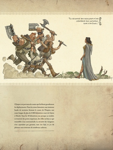 L'Empire de la Négation est un hors-série de la série culte de Froideval, Chroniques de la Lune noire, un véritable guide mêlant textes et illustrations pour tout savoir sur l'empire de Wismerhill ! Ce nouvel album des Chroniques de la Lune noire se présente sous forme d'un guide mêlant textes et illustrations. Netsharine, première houri d'Hishtarland, est envoyée par son seigneur et maître espionner les terres de l'empereur Wismerhill. Rompue aux techniques d'espionnage et de séduction les plus redoutables, c'est son rapport de mission que Froideval nous donne à lire ; un document écrit dans ce style inimitable, mélangeant froides descriptions, envolées lyriques et humour décalé. Un véritable guide de l'Empire de la Négation, une occasion unique d'approfondir ses connaissances sur l'univers des Chroniques. Forces politiques, militaires et religieuses, description du palais et des épées de Wismerhill, mais aussi créatures étranges et redoutables, trolls, et autres gigantomorphes, tout cela est illustré par des images reprises des albums, mais surtout par de nombreux et magnifiques inédits d'Olivier Ledroit, Fabrice Angleraud, Cyril Pontet, dessinateurs attitrés de la série, mais aussi de Patrick Pion, Delphine Gache, Cent Alantar, et Brucero.