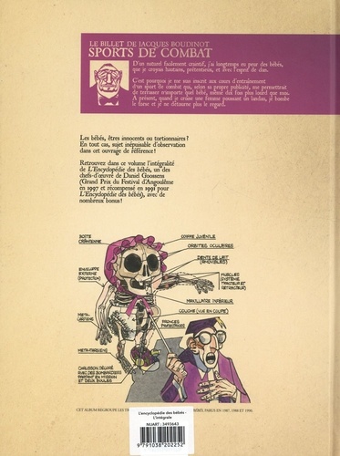Les bébés, êtres innocents ou tortionnaires ? En tout cas, sujet inépuisable d'observation dans cet ouvrage de référence ! Retrouvez dans ce volume l'intégralité de L'Encyclopédie des bébés, un des chef-d'oeuvre de Daniel Goossens (Grand prix du festival d'Angoulême en 1997 et récompensé en 1991 pour L'encyclopédie des bébés), avec de nombreux bonus !