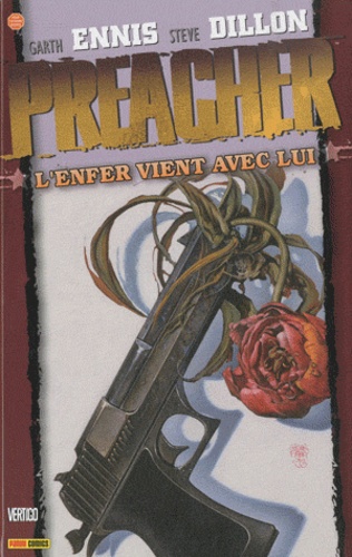 Après avoir nettoyé la petite ville texane de Salvation, après avoir retrouvé sa mère, longtemps crue morte, et après s'être entretenu psychiquement avec l'entité omnipotente qui habite son esprit, le révérend Jesse Custer est enfin prêt à constater les dégâts que sa mort apparente et son absence inexpliquée ont provoqué chez l'amour de sa vie. Tulip O'Hare. Mais se réconcilier avec Tulip est facile : la véritable épreuve consiste à découvrir la vraie nature de l'homme qu'il considérait comme son meilleur ami, le vampire irlandais Cassidy. Plus Jesse en apprend sur les heures sombres de Cassidy, plus il découvre un être méprisable, et plus grande devient la nécessité d'un affrontement... Un affrontement que souhaite également l'ennemi juré de Jase, le chef du Graal, Herr Starr. L'enfer vient avec lui est le huitième volume de la saga Preacher, l'un des comics les plus plébiscités des années 1990. Créée par le scénariste Garth Ennis et le dessinateur Steve Dillon, cette épopée moderne parle de vie, de mort et de rédemption mais aussi de sexe, d'alcool, de sang et d'armes à feu... sans parler des anges, des démons, de Dieu, des vampires et des cinglés en tout genre qui font de cette aventure l'une des plus viscérales jamais publiées. En bonus, cet album contient également les commentaires de Glenn Fabry, qui a peint l'intégralité des couvertures de la série.