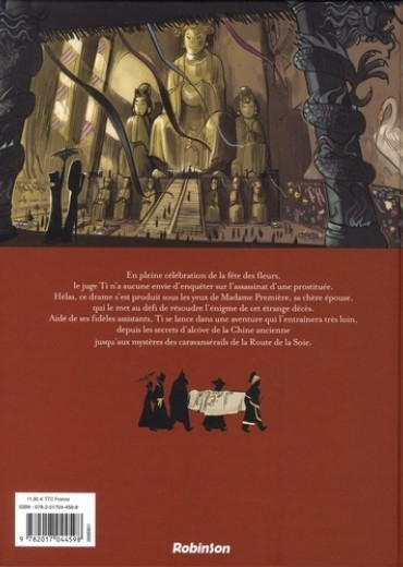 Créée par Robert H. Van Gulik en 1957 et prolongée par Frédéric Lenormand, la série de romans policiers historiques du Juge Ti est rapidement devenue un phénomène littéraire. Les enquêtes du Juge Ti durant la dynastie Tang ont passionné des millions de lecteurs avant de devenir, sous la direction de Tsui Hark, des longs métrages à succès (Detective Dee). Aujourd'hui, pour la première fois, les enquêtes du Sherlock Holmes chinois sont adaptées en bande dessinée pour permettre à de nouveaux lecteurs de découvrir cet univers et ses personnages passionnants.
