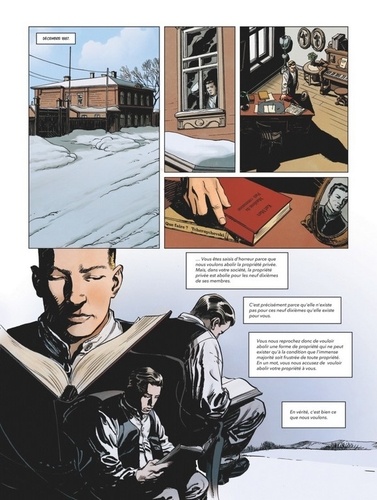 " Là où il y a une volonté, il y a un chemin " Russie, 1887. Motivé par la culture révolutionnaire suite à l'exécution pour terrorisme de son frère Alexandre, le jeune Vladimir Oulianov se plonge dans la lecture d'écrivains engagés comme Karl Marx ou Tchernychevski. Revenu à Saint-Pétersbourg après plusieurs années d'exil, il multiplie alors la publication de journaux clandestins et pamphlets opposés au pouvoir tsariste. Régulièrement incarcéré, sans cesse en fuite en Allemagne, Suisse ou Angleterre, il ne tarde pas à devenir une figure de proue du Parti ouvrier social-démocrate. Mais bien qu'il se revendique des écrits de Marx, " Lénine " prétend que la Révolution ne pourra pas venir du prolétariat s'il ne dispose d'un appareil politique puissant. Par d'habiles manoeuvres permettant à ses partisans de devenir Bolcheviks - c'est-à-dire majoritaire - et de prendre le pouvoir au sein du Parti, Lénine se révèle un fin stratège et laisse déjà entrevoir un autoritarisme forcené...