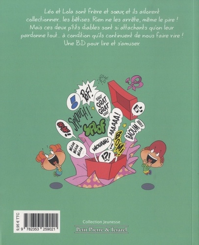 Léo et Lola sont frère et soeur, et ils adorent collectionner... les bêtises. Rien ne les arrête, même le pire ! Mais ces deux p'tits diables sont si attachants qu'on leur pardonne tout... à condition qu'ils continuent de nous faire rire ! Une BD pour lire et s'amuser.
