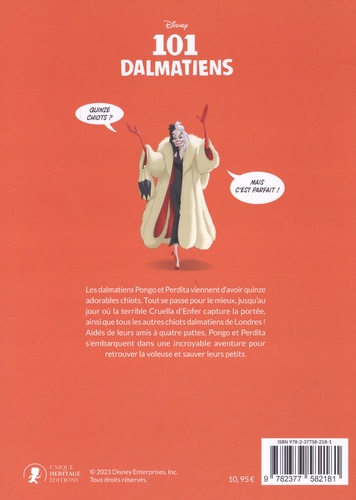 Les dalmatiens Pongo et Perdita viennent d'avoir quinze adorables chiots. Tout se passe pour le mieux, jusqu'au jour où la terrible Cruella d'Enfer les capture, ainsi que tous les chiots dalmatiens de Londres ! Aidés de leurs amis à quatre pattes, Pongo et Perdita s'embarquent dans une incroyable aventure pour retrouver la voleuse et sauver leurs petits.