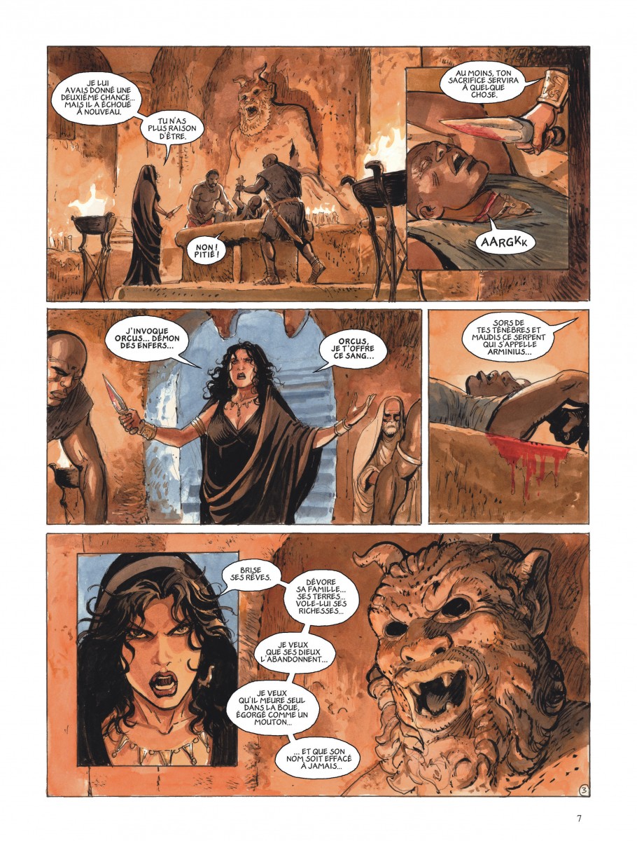 La rivalité entre Marcus et Arminius est plus féroce que jamais. Marcus veut retrouver son fils et le ramener à Rome, espérant ainsi sauver le frère de Cabar. Mais il est trop tard : Morphea a déjà tué son otage de ses propres mains. Marcus, toujours en charge de la mission que lui a confiée Germanicus il y a longtemps, part récupérer les aigles perdues, l'une d'entre elles serait aux mains des Bructères. De son côté, Arminius, bouleversé par la capture de Thusnelda, est plus résolu que jamais à anéantir les Romains. Son agressivité et sa soif de vengeance ne cessent de croître. Dans l'ombre, Morphea et Sejanus complotent de leur côté pour assassiner Thusnelda, qui s'apprête à donner naissance à son enfant. Marcus lui, est toujours déterminé à tuer Arminius. Tandis que les tensions atteignent leur paroxysme, le destin de chacun semble plus incertain que jamais...