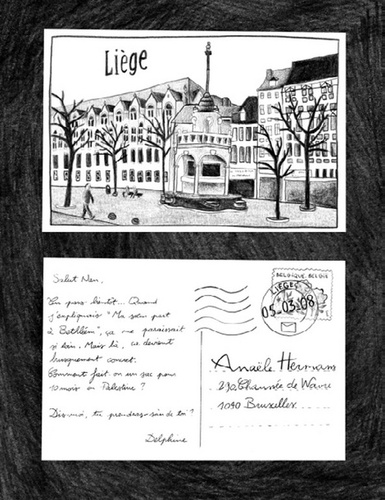 Deux soeurs s'écrivent. L'une est en Palestine, volontaire dans des programmes d'aides, oscillant entre ses amis palestiniens et ses amis israéliens. L'autre est dessinatrice, restée au pays, à Liège, en Belgique. De leur correspondance est né LES AMANDES VERTES qui tente de restituer une réalité complexe, à travers le prisme de l'expérience d'une jeune femme qui essaie de partager avec sa soeur ses sentiments et ses aventures dans les territoires occupés.