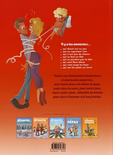 Quand amour rime avec humour L'amour est la plus belle des choses, mais il comporte aussi son lot de situations cocasses ! Que l'on soit transi, secret, romantique, tendre ou maladroit, on a tous fait des folies pour l'élu(e) de notre coeur. Certaines dont on est plus fier que d'autres, avouons-le... Et vous, jusqu'où avez-vous été capable d'aller par amour ? Après Les Retraités et Les Grands-parents en BD, cette nouvelle série humour de gags en une planche met en scène celles et ceux à qui l'amour donne des ailes, pour le meilleur et pour le rire. Pour la Saint-Valentin, offrez-vous cet album drôle et impertinent sur ce qui, au fond, reste et restera la grande affaire de l'humanité.