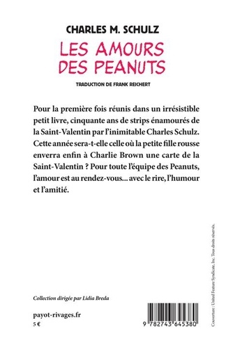 Pour la première fois réunis dans un irrésistible petit livre, cinquante ans de strips énamourés de la Saint-Valentin par l'inimitable Charles Schulz. Cette année sera-t-elle celle où la petite fille rousse enverra enfin à Charlie Brown une carte de la Saint-Valentin ? Pour toute l'équipe des Peanuts, l'amour est au rendez-vous... avec le rire, l'humour et l'amitié.