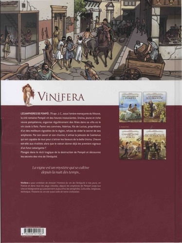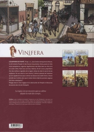 Des cendres nait le nectar... An 79, Pompéi. Sous l'ombre menaçante du Vésuve, la cité romaine vit des heures insouciantes. Ursina, jeune et riche veuve pompéenne, organise régulièrement des fêtes dans sa villa où le vin coule à flots. Parmi ses convives, Valerius, fils de Lucius et probablement l'un des meilleurs vignerons de la région, refuse de céder le secret de ses amphores. Par sa beauté et son savoir, il attise la jalousie de Caietanus. Qui sait ce que ce dernier sera capable de faire pour s'attirer les faveurs de la belle Ursina ? L'heure est-elle aux rivalités alors que le volcan donne déjà les premiers signaux d'un futur cataclysme ? A travers une intrigue mêlant habilement Histoire, fiction et vulgarisation érudite sur le vin, plongez dans le récit tragique de la destruction Pompéi et découvrez le secret des vins de l'Antiquité.