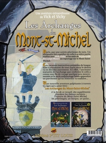 Paris, par une soirée pluvieuse de juin. Un antiquaire fait expédier un colis à sa nièce partie réaliser avec Vick, Vicky et les amis de la patrouille des Loups Blancs un reportage sur le Mont-Saint-Michel. Ces vacances instructives préparées de longue date s'annoncent de tout repos mais le destin va en décider autrement. En effet, l'ancienne statuette de l'archange que renferme le colis a connu une fin de voyage quelque peu mouvementée et le socle endommagé laisse apparaître un parchemin qu'un historien du Mont-Saint-Michel va traduire...
