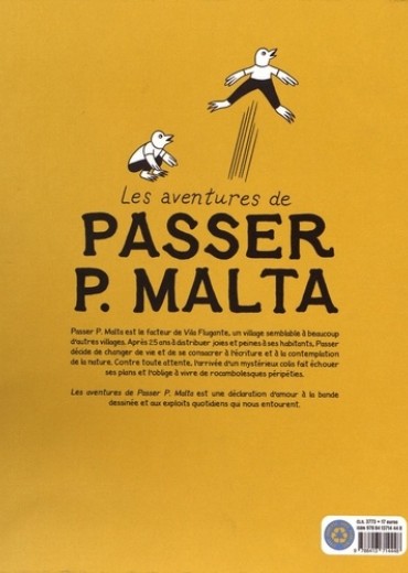 Passer P. Malta est le facteur de Vila Flugante, un village semblable à beaucoup d'autres villages. Après 25 ans à distribuer joies et peines à ses habitants, Passer décide de changer de vie et de se consacrer à l'écriture et à la contemplation de la nature. Contre toute attente, l'arrivée d'un mystérieux colis fait échouer ses plans et l'oblige à vivre de rocambolesques péripéties. Les aventures de Passer P. Malta est une déclaration d'amour à la bande dessinée et aux exploits quotidiens qui nous entourent.
